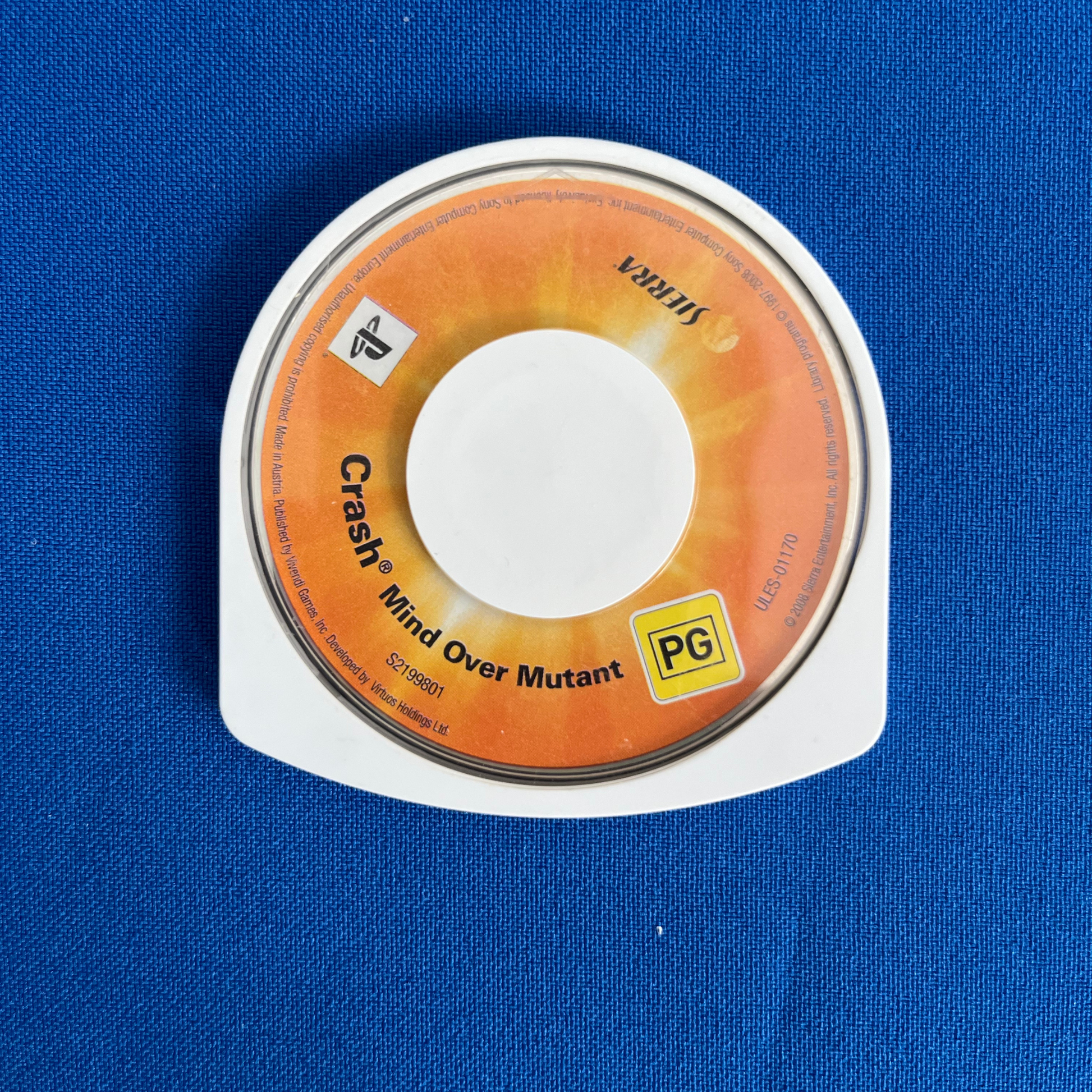 Plně funkční hra Crash Mind Over Mutant pro herní konzoli Sony PSP. Samotný disk,