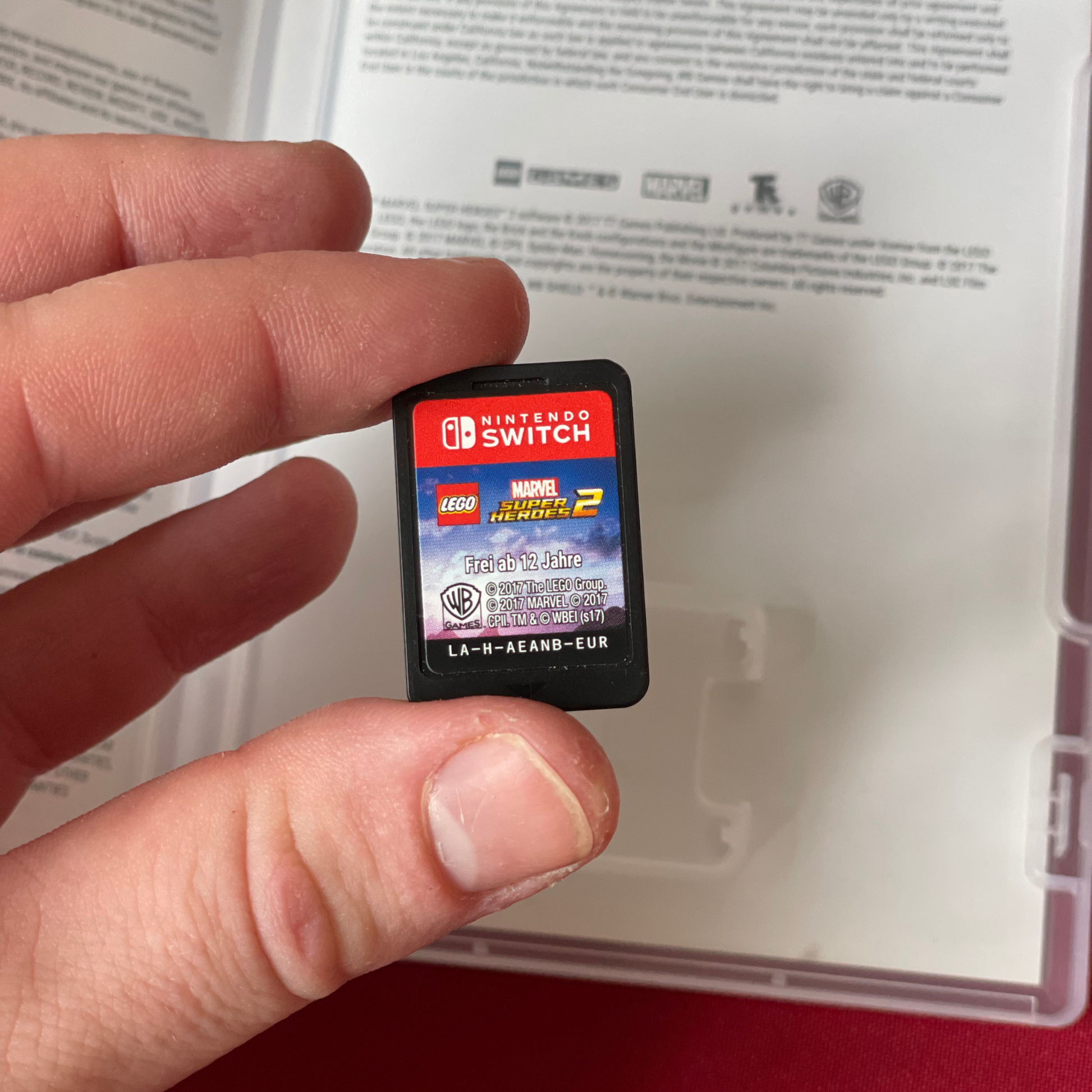 Plně funkční hra Lego Marvel Super Heroes 2 na Nintendo Switch s krabičkou a fyzickou hrou.