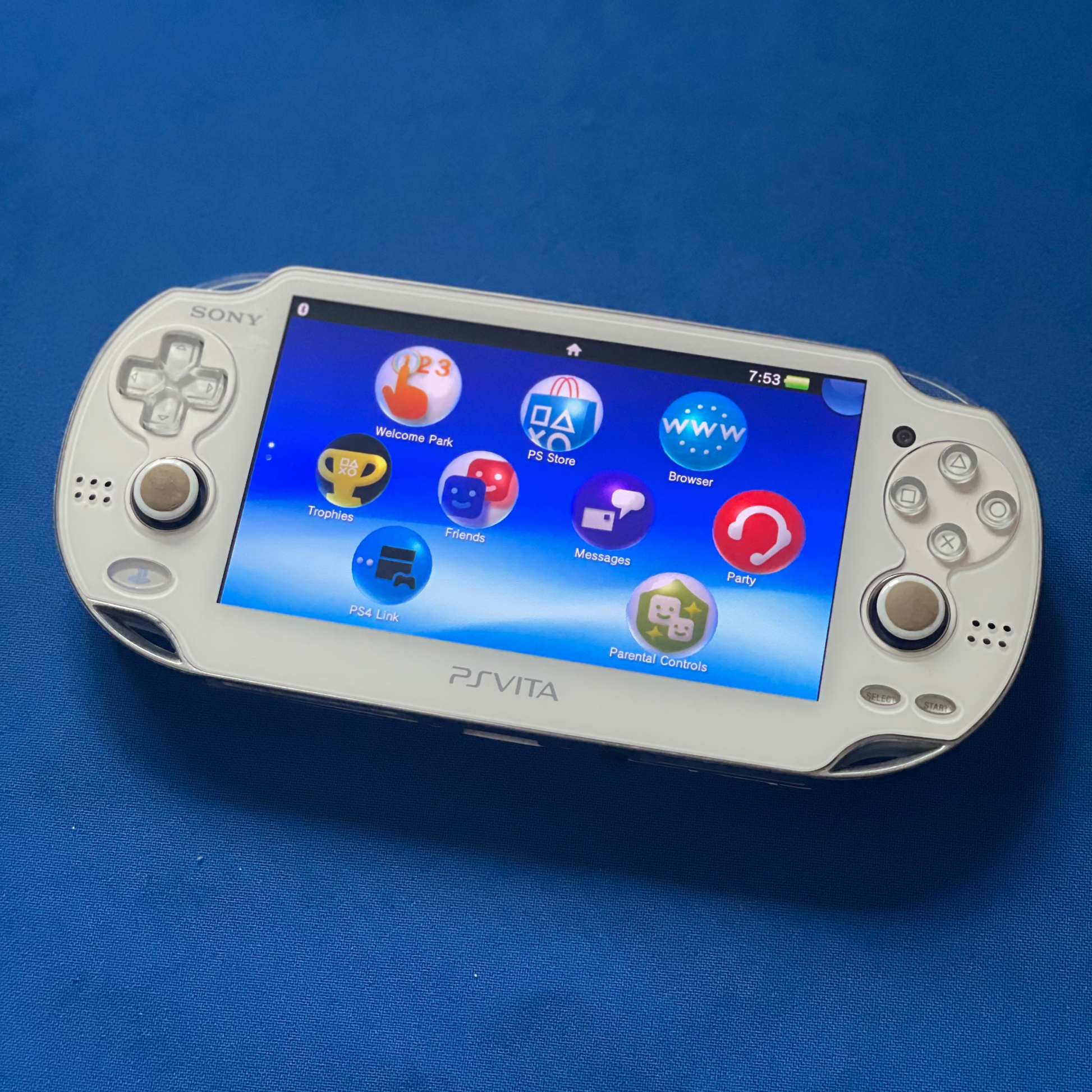 Plně funkční Sony PlayStation Vita1000 s OLED displejem v bílé barvě, verze s připojením k Wifi. Konzole je v angličtině a region free. Základní paměť je 1GB.