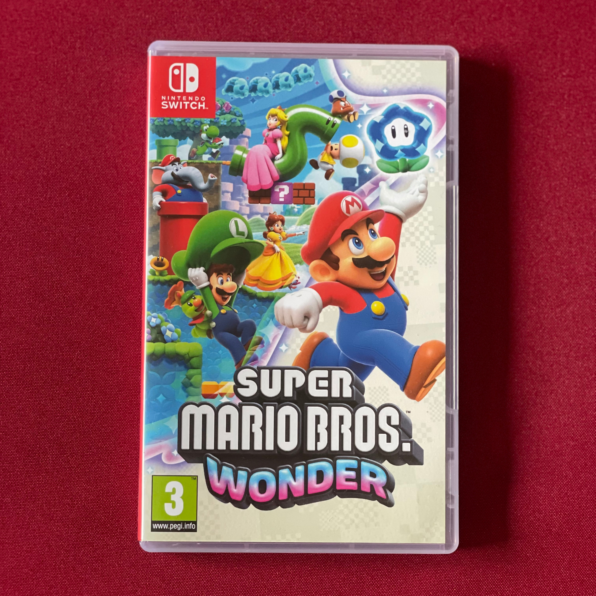 Plně funkční hra Super Mario Bros Wonder na Nintendo Switch s krabičkou a fyzickou hrou.