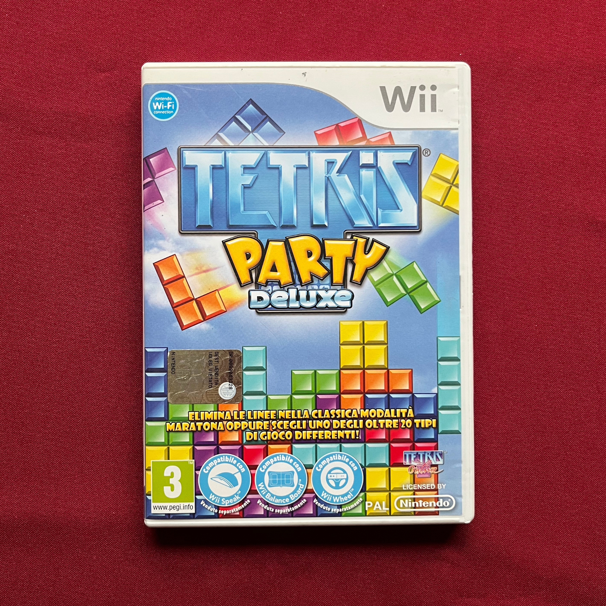 Plně funkční hra Tetris Party Deluxe pro Nintendo Wii, v kompletním balení včetně krabičky a manuálů. PAL verze v AJ.